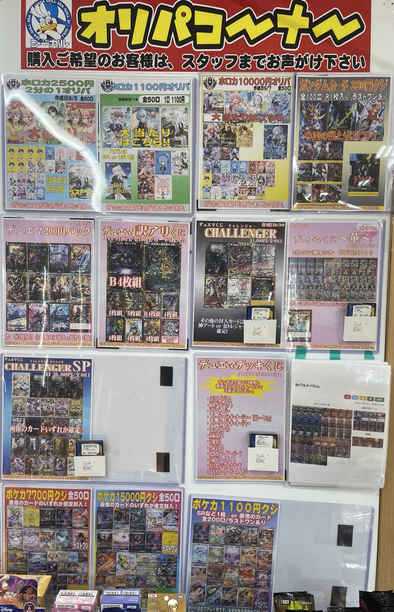 こんにちは(」・ω・) シーガル郡山店です。 ただいま展開中のオリパ各種はこちら⬇️⬇️⬇️⬇️となっております。 ご来店お待ちしております(*^^*)