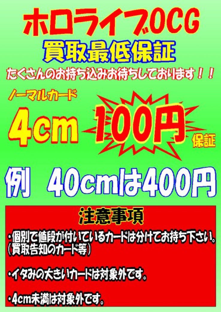 こんにちは‼️ シーガル郡山店です。 ホロカ ノーマルカードお買取保証開始致しました‼️ 注意事項等をお読みになってからお願い致します。 ご来店お待ちしております(*^^*)