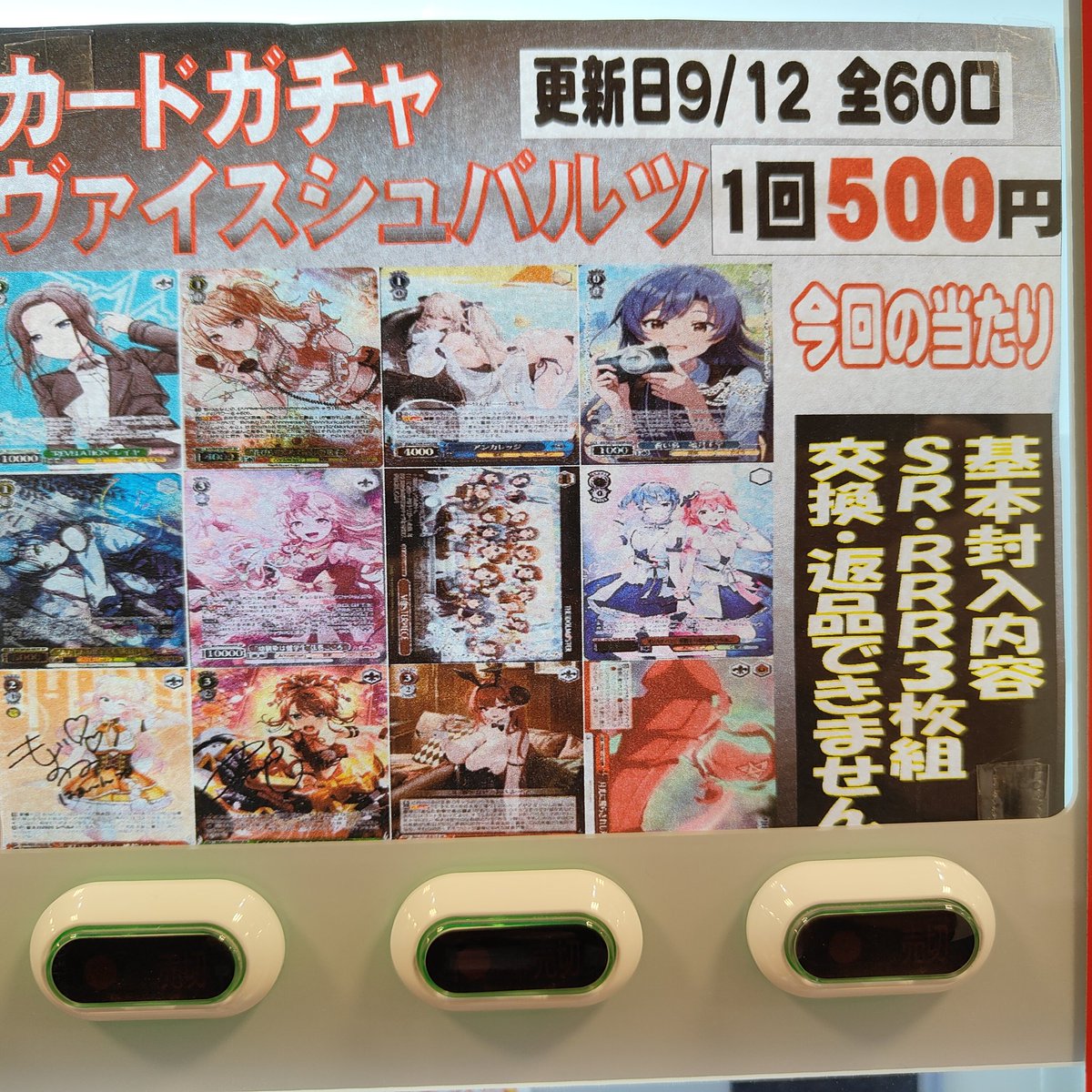 シーガル郡山店です! ヴァイスシュヴァルツ カードガチャ 更新いたしました✨ 今回もSR・RRR3枚確定となっております! よろしくお願いします‼️‼️