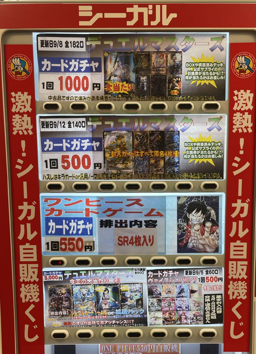 こんにちは(」・ω・) シーガル郡山店です。 ただいま自販機にて展開中のタイトルはこちら⬇️⬇️👇👇 となっております。 ご来店お待ちしております(*^^*)