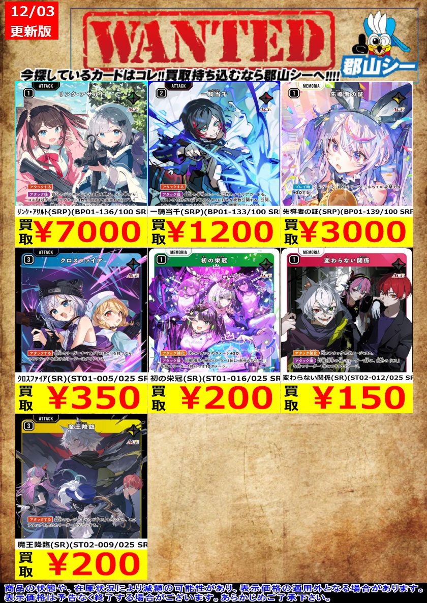 シーガル郡山店クロスタお買取情報!! 初の栄冠(SR)(ST01-016/025 SR) ¥200 クロスファイア(SR)(ST01-005/025 SR) ¥350 リンク・アサルト(SRP)(BP01-136/100 SRP) ¥7,000 #クロスタ #XrossStars #シーガル郡山店