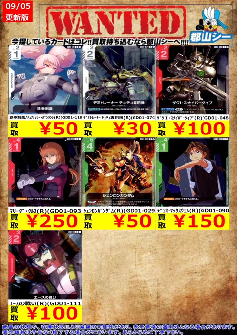シーガル郡山店ガンダムCGお買取情報!! 覚悟の表れ(U+)(GD01-100) ¥3,300 溢れる慈愛(U+)(GD01-118) ¥9,000 #ガンダムカードゲーム #GCG #シーガル郡山店