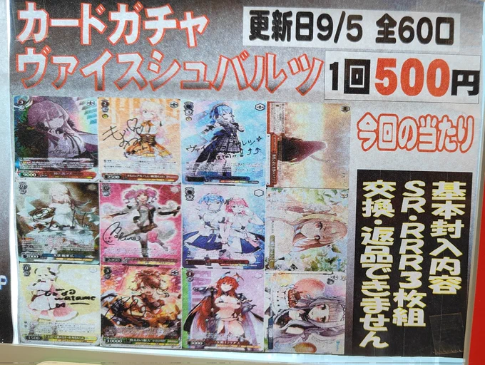 シーガル郡山店です! カードガチャ ヴァイスシュヴァルツ 完売しましたので、補充しました✨ よろしくお願いします‼️