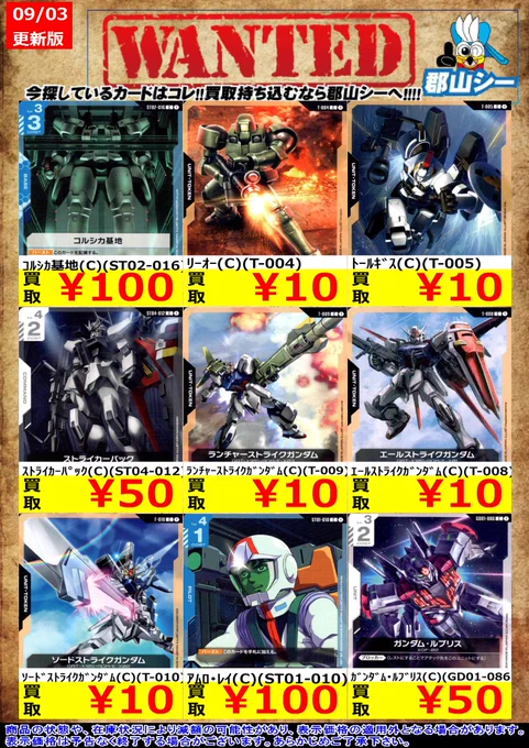 シーガル郡山店ガンダムCGお買取情報!! ストライカーパック(C)(ST04-012) ¥50 ガンダム・ルブリス(C)(GD01-086) ¥50 コルシカ基地(C)(ST02-016) ¥100#ガンダムカードゲーム #GCG #シーガル郡山店
