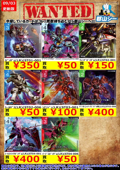 シーガル郡山店ガンダムCGお買取情報!! エールストライクガンダム(LR)(ST04-001) ¥400 ウィングガンダム(LR)(ST02-001) ¥150 ガンダム(LR)(ST01-001) ¥350#ガンダムカードゲーム #GCG #シーガル郡山店