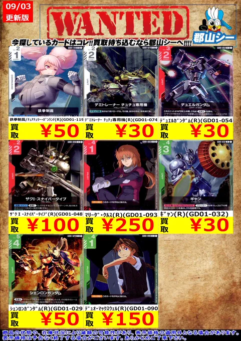 シーガル郡山店ガンダムCGお買取情報!! デュオ・マックスウェル(R)(GD01-090) ¥150 マリーダ・クルス(R)(GD01-093) ¥250 デュエルガンダム(R)(GD01-054) ¥30 #ガンダムカードゲーム #GCG #シーガル郡山店