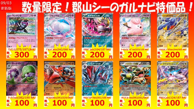 数量限定郡山シー限定ガルナビ特価品! ※買取金額ではございません※ ハリテヤマ(R)(025/063) ¥50 ルナトーン(R)(026/063) ¥80 メガガルーラex(RR)(051/063) ¥100