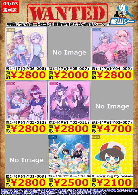 シーガル郡山店ホロライブOCGお買取り情報!! ※商品の状態や在庫状況により減額の可能性があり、表示価格の適用外となる場合がございます。 白エール(魔法少女ホロウィッチ!)(P)(hY01-002) ¥300 白エール(姫森ルーナ)(SY)(hY01-004) ¥1,000 白エール(博衣こより)(SY)(hY01-006) ¥1,900