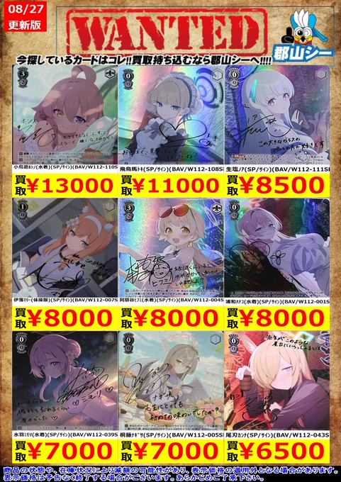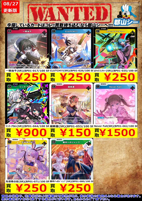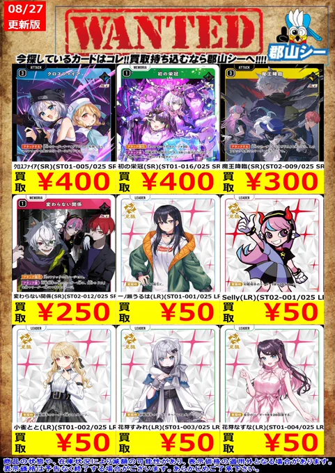 シーガル郡山店ヴァイスお買取り情報!※商品の状態や在庫状況により減額の可能性があり、表示価格の適用外になる場合がございます。予めご了承ください。 #ヴァイスシュヴァルツ #買取 #シーガル郡山店