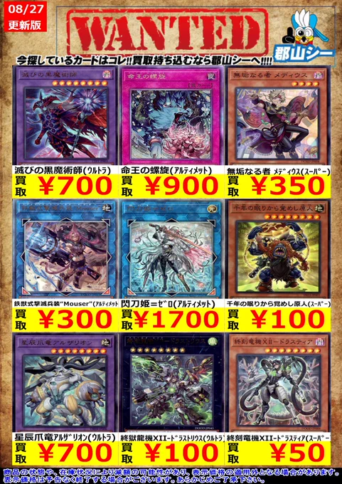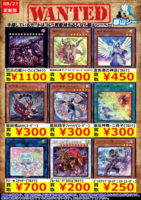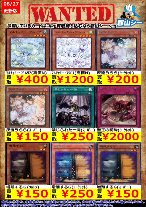 シーガル郡山店遊戯王お買取り情報 ※商品の状態や在庫状況により減額の可能性があり、表示価格の適用外となる場合がございます。 K9-EX “Werewolf”(ウルトラ) ¥150 フルールドバロネス(ウルトラ) ¥200 バックアップ@イグニスター(スーパー) ¥250 #遊戯王 #シーガル #郡山店