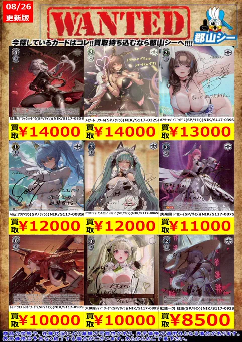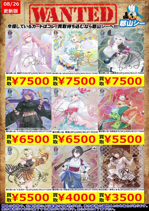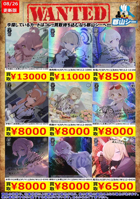 シーガル郡山店ヴァイスお買取り情報!※商品の状態や在庫状況により減額の可能性があり、表示価格の適用外になる場合がございます。予めご了承ください。 #ヴァイスシュヴァルツ #買取 #シーガル郡山店