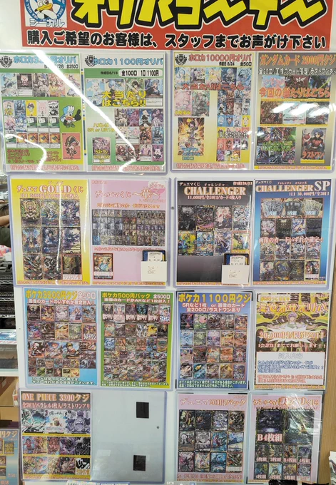 おはようございます! 現在展開中のオリパ一覧になります! 本日もご来店お待ちしております‼️