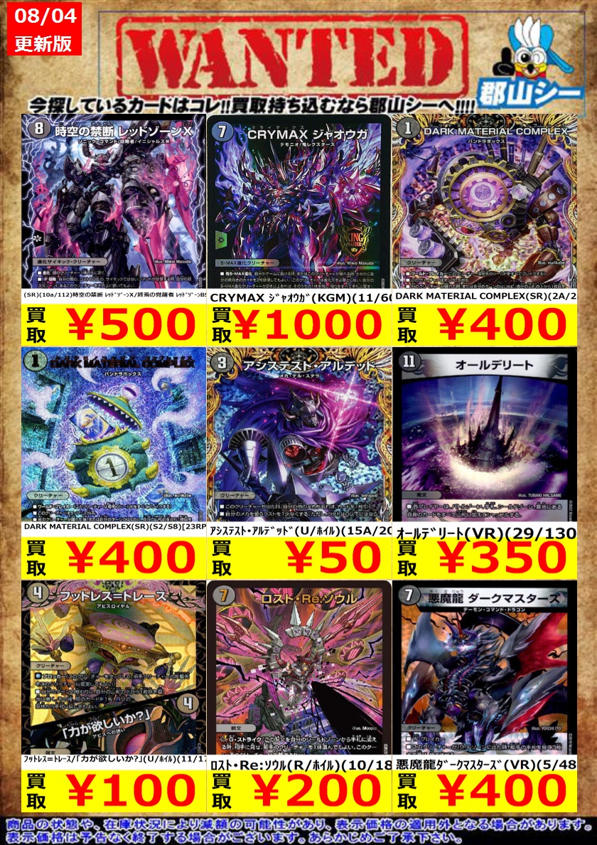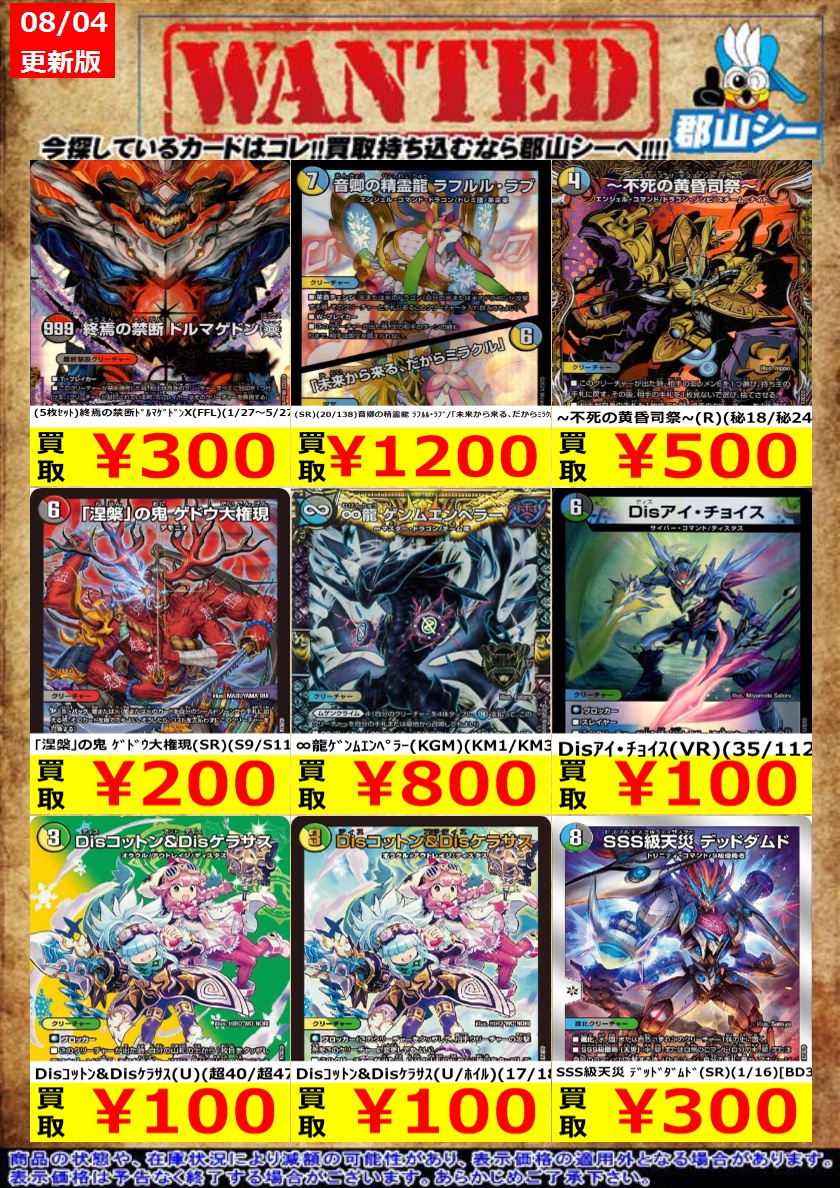 8月6日にデュエマ平日非公認大会を行います❗️ 参加費無料、優勝賞品はデュエマ中古1000円割引券です✨ ご参加お待ちしております🙇♂️