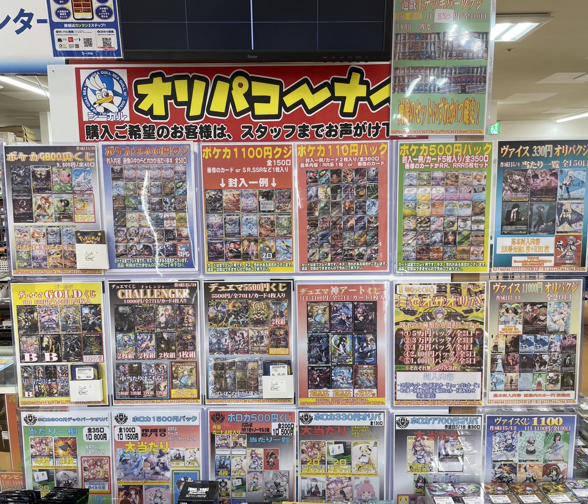 おはようございます😊 シーガル郡山店です。 ただいま展開中のオリパ各種になります。 ご来店お待ちしております(*^^*)