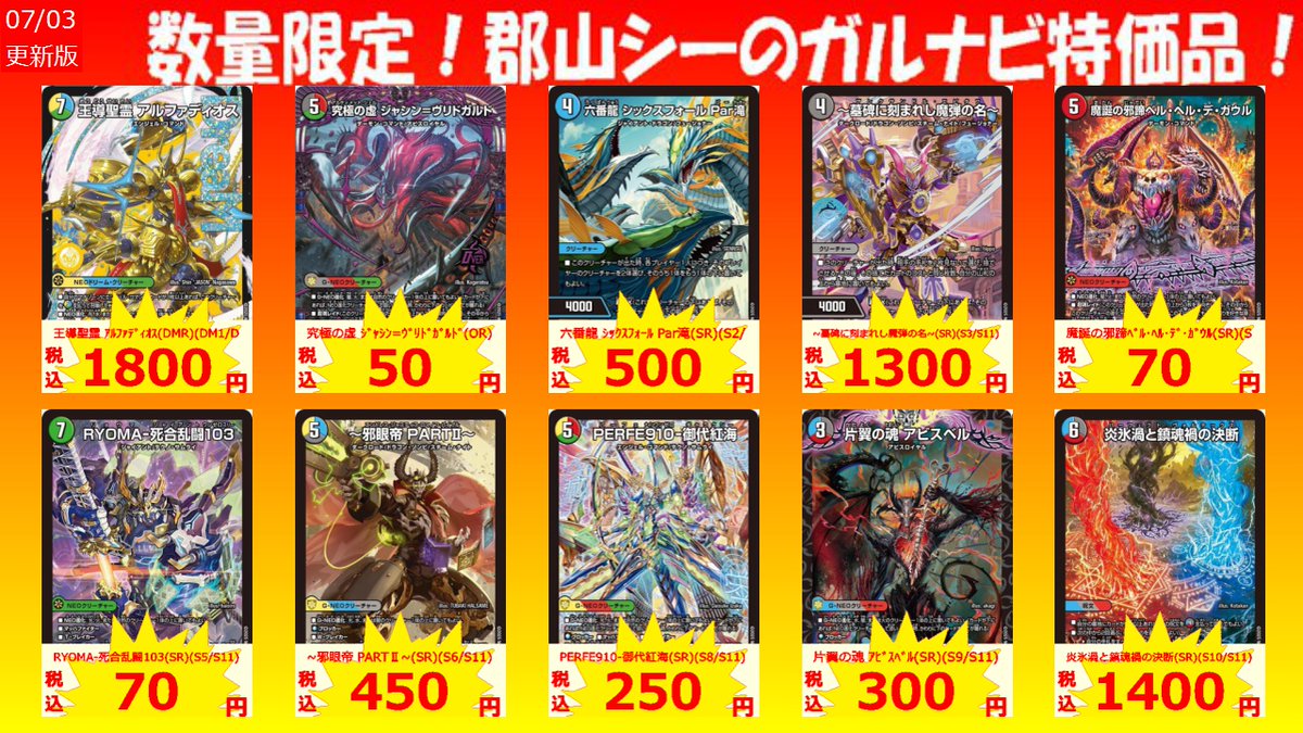 数量限定!郡山シー限定ガルナビ特価品 ~紺碧の奇術師~ ¥70 BARUGA-雷座87 ¥70 場和了GO-YAMA-58 ¥70 #デュエマ #シーガル郡山 #アツアツ特価