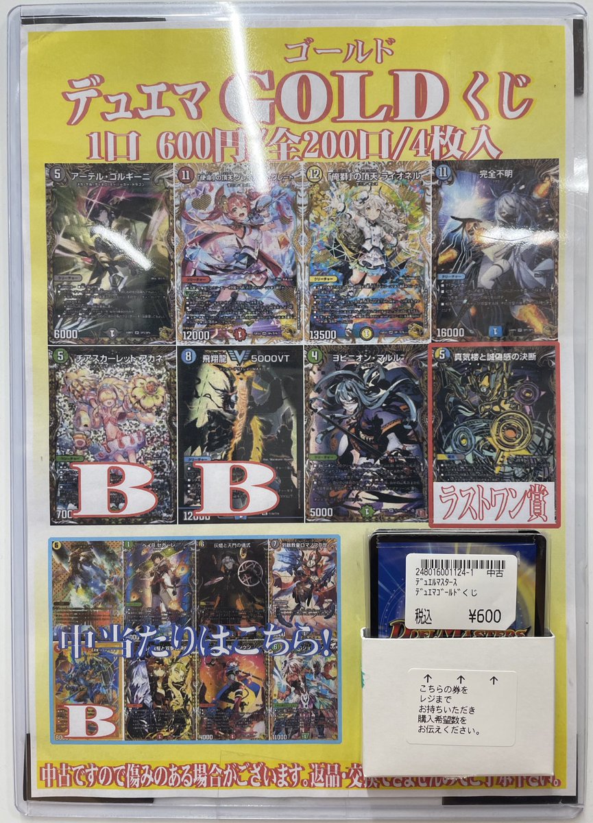 デュエマGOLDくじを作成いたしました❗️ シークレット、20thレア、金トレジャー等の金ピカカードが1枚以上封入されています✨ よろしくお願いいたします(*´▽`*)