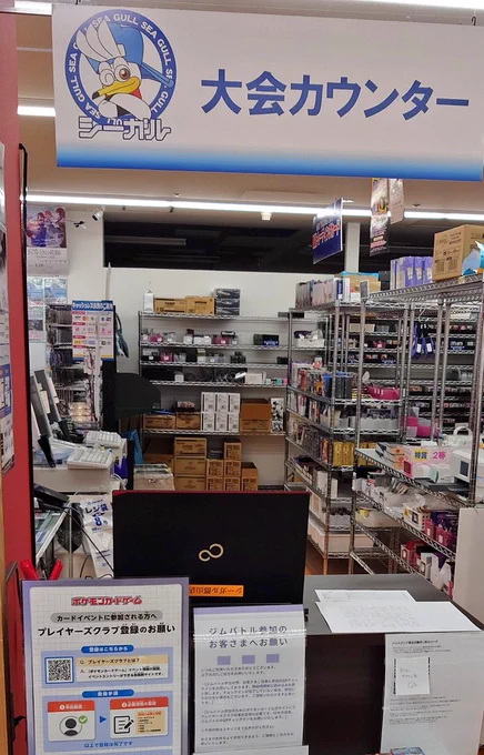 イベント受付は買取カウンター横 〝大会カウンター〟にて QRコードチェックインを参加者のみなさんにお願いしております。 開始時間前までに大会カウンターへお越しいただき、チェックインお願いいたします🙏 不明の際はスタッフまでお声かけください!!