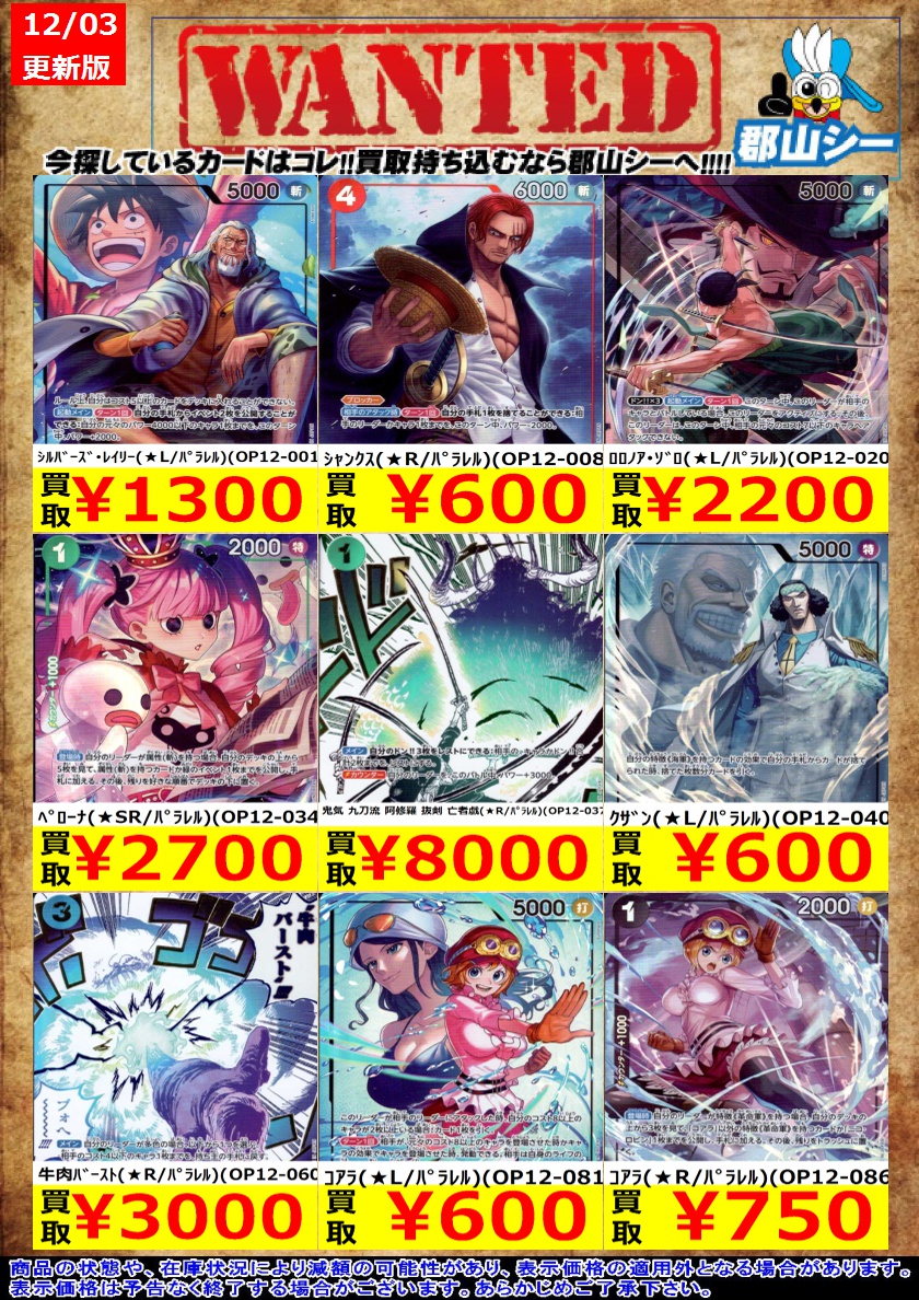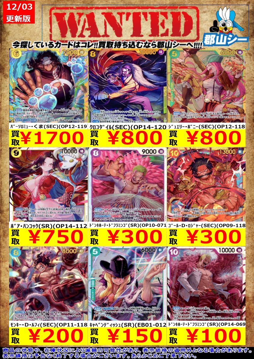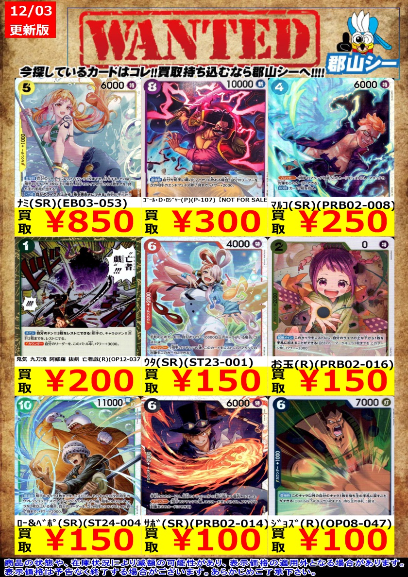 シーガル郡山店です❗ ワンピ特価商品一部追加致しました‼️ ぜひ、よろしくお願いします🙇