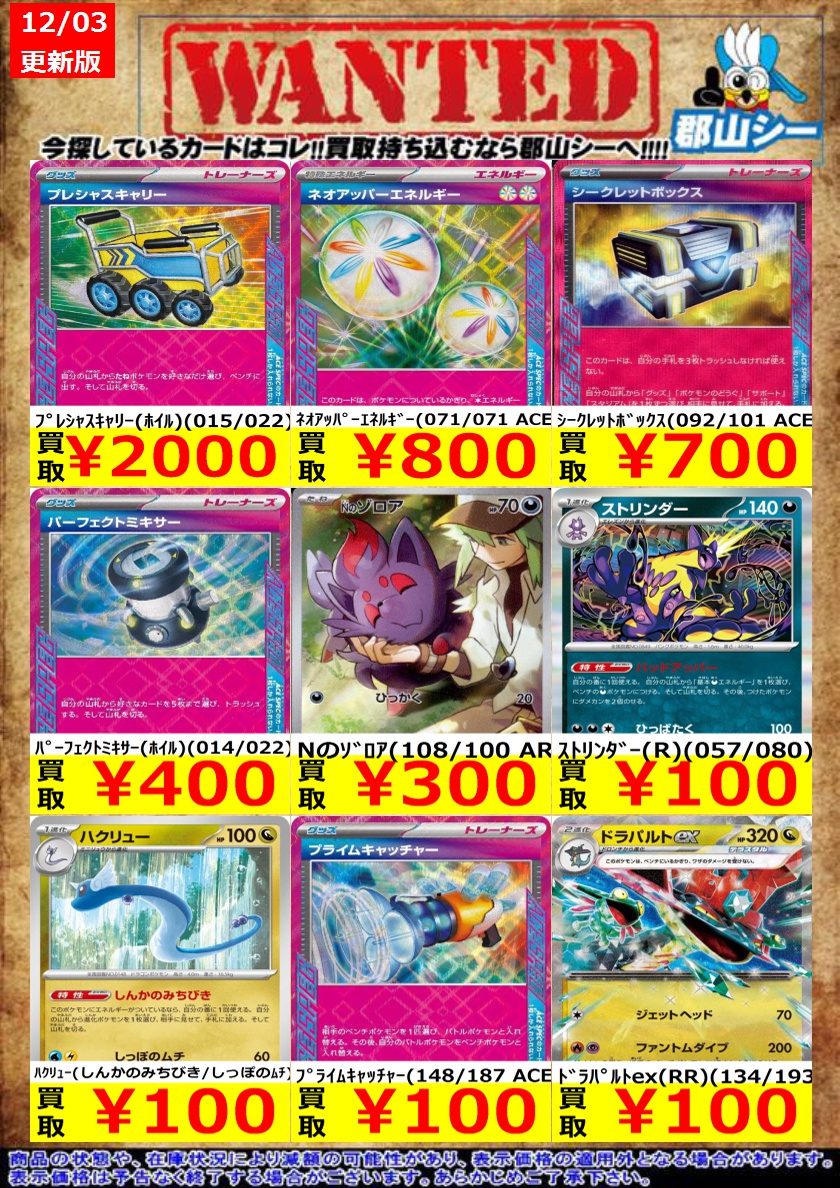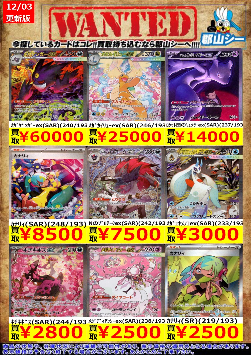 シーガル郡山店ポケカ数量限定お買取り情報更新です!よろしくお願いいたします! ※商品の状態や在庫状況により減額の可能性があり、表示価格の適用外となる場合がございます。