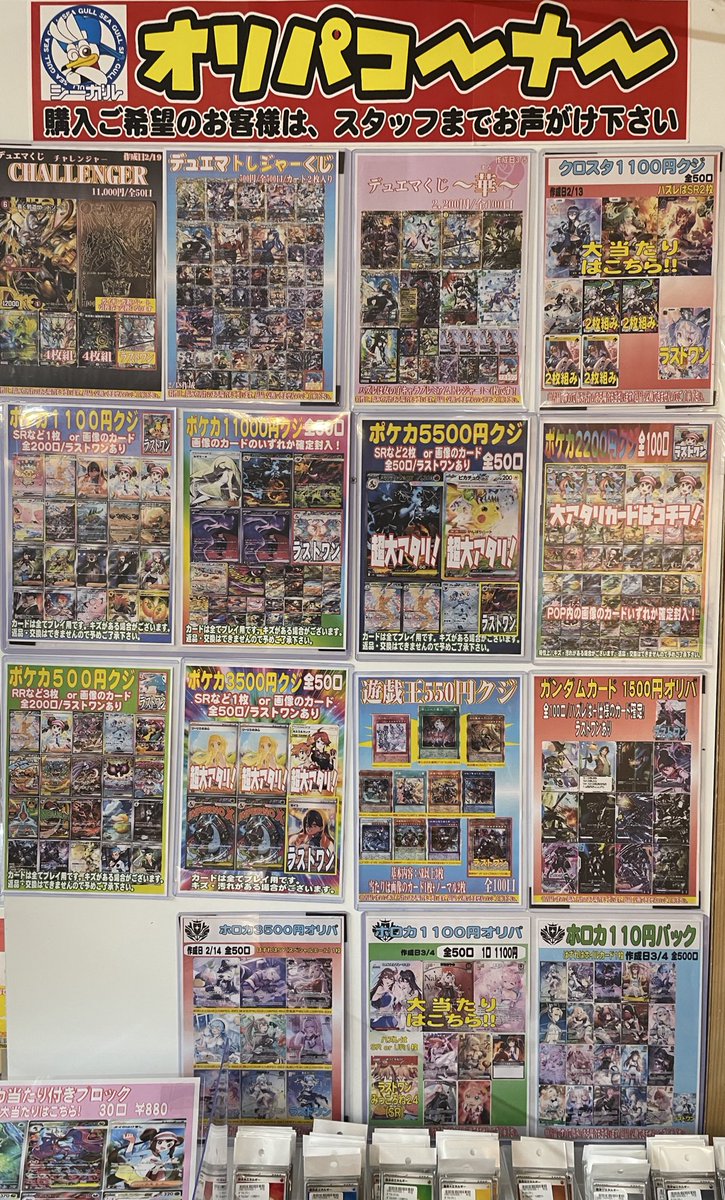 こんにちは(」・ω・) シーガル郡山店です。 ただいま展開中のオリパ各種はこちらとなっております。 ご来店お待ちしております!
