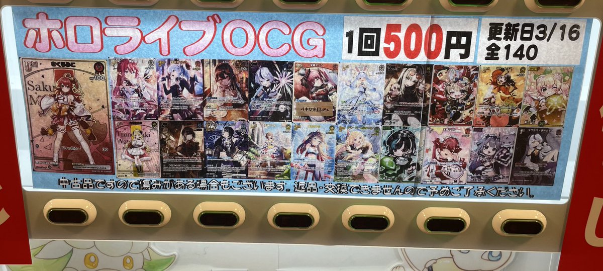 こんにちは(」・ω・) シーガル郡山店です。 ホロカ 500円自販機更新いたしました! 最新弾のカードも沢山入っております。 ご来店お待ちしております!