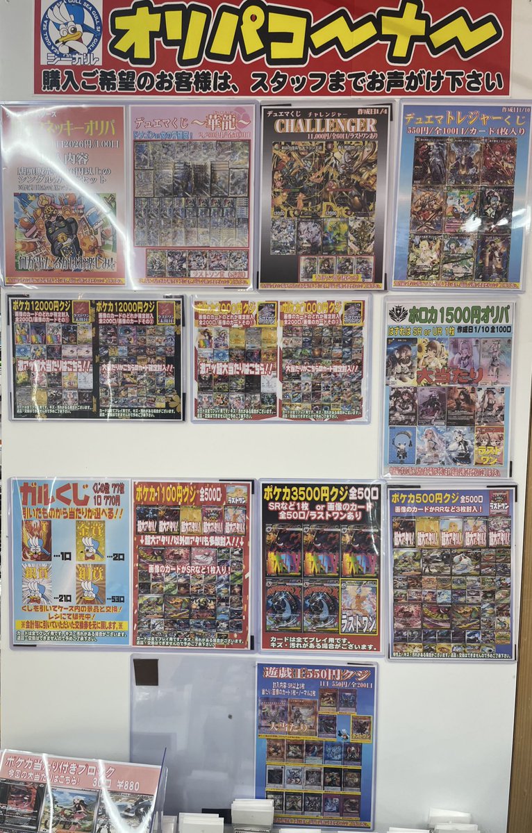 おはようございます(*^^*) シーガル郡山店です。 ただいま展開中のオリパ各種はこちらとなっております。 ご来店お待ちしております‼️