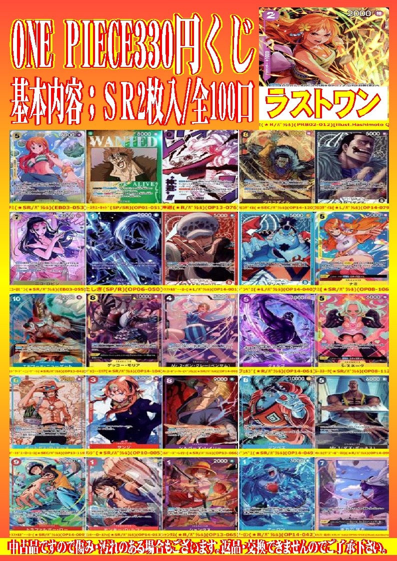 シーガル郡山店です❗ ワンピ330円くじ作成致しました‼️ ぜひ、よろしくお願いします🙇