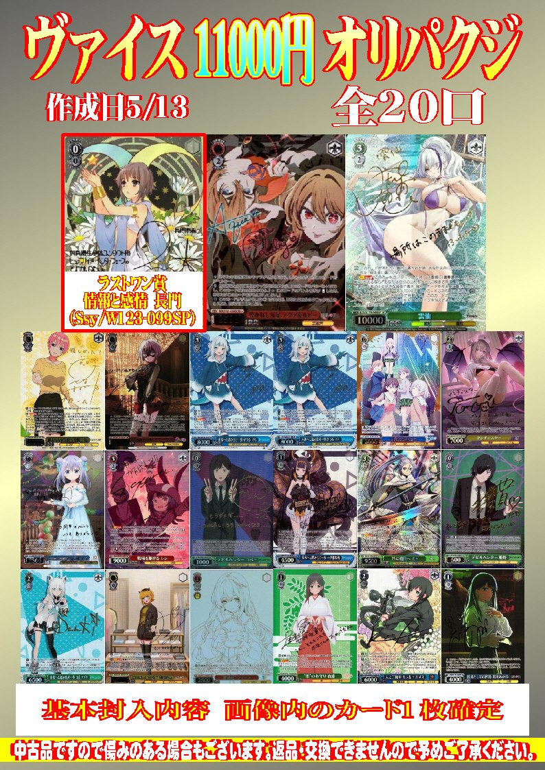 シーガル郡山店です! ✨ヴァイス11000円オリパクジ✨ 作成しました! 箔押しのサインカードなど画像内のカードが確定のアツアツオリパとなっております✨ よろしくお願いします‼️