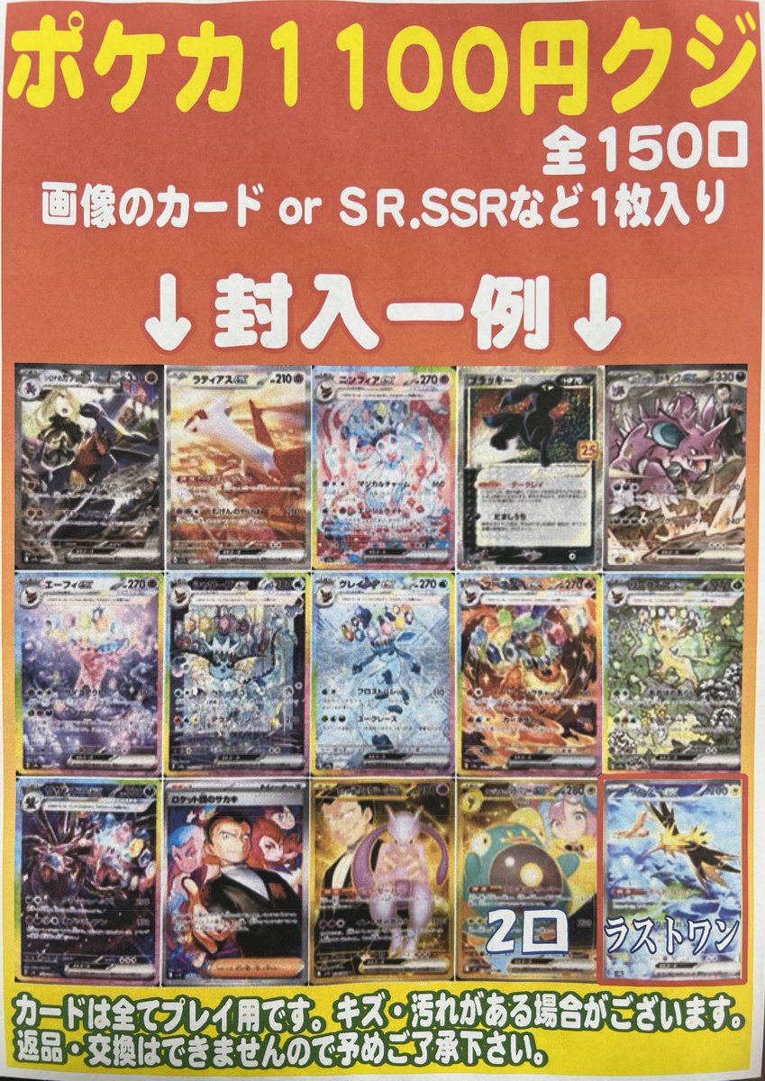 🌈ポケカ1100円くじ🌈 全150口で販売開始‼️ 是非ぜひお試しください(*´ω`*)