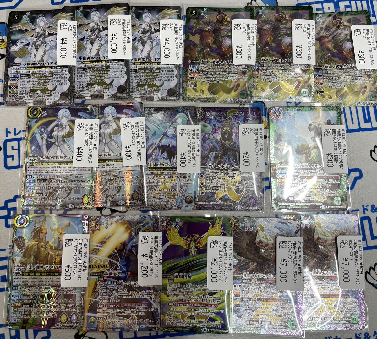 シーガル郡山店バトスピお買取り情報!※商品の状態や在庫状況により減額の可能性があり、表示価格の適用外になる場合がございます。予めご了承ください。 五英雄 氷槍の聖女グラフィーラ(X)(BSC47-RV X01) ¥150 元始の契約神イザナギ&イザナミ(契約X)(BSC47-CX01) ¥200