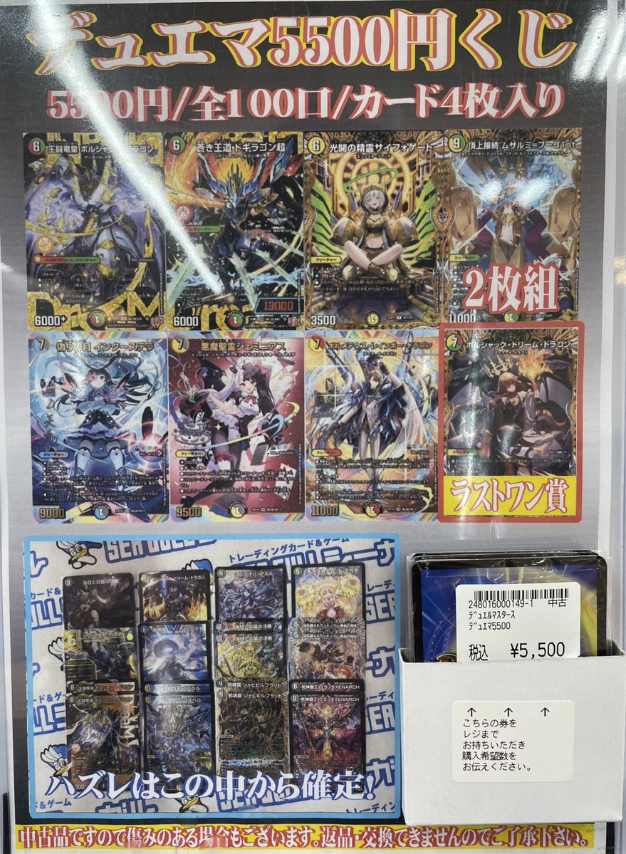 デュエマ5500円くじを作成いたしました❗️ 今回は大当たりに2種類のドリームレアシークレットを準備いたしました✨ よろしくお願いいたします🙇♂️