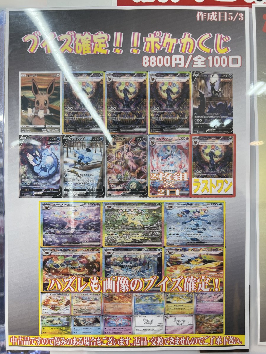 ブイズ確定ポケカくじ、残り7口です‼️ ラストワンはブラッキーexSAR🌈 是非(*´ω`*)