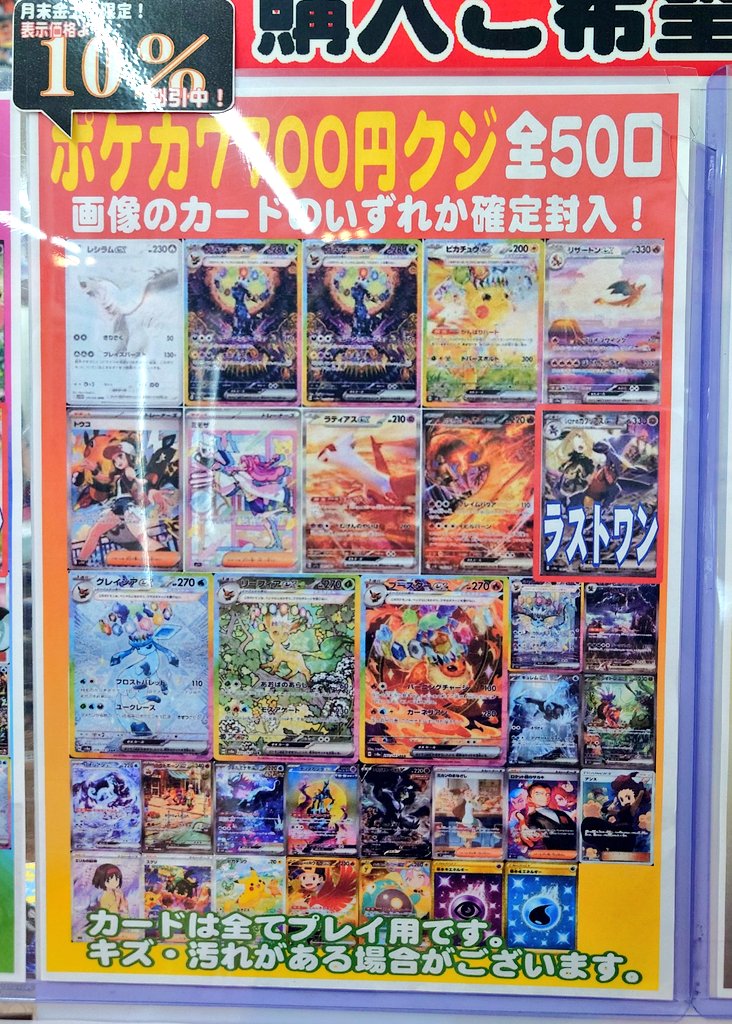 月末 #プレミアムフライデー 便乗企画! POPが貼ってあるオリパくじは“表示価格から10%引”✨️ ポケカ 7700円クジ を10%offにさせて頂きました‼️ よろしくお願いします(*´ω`*)