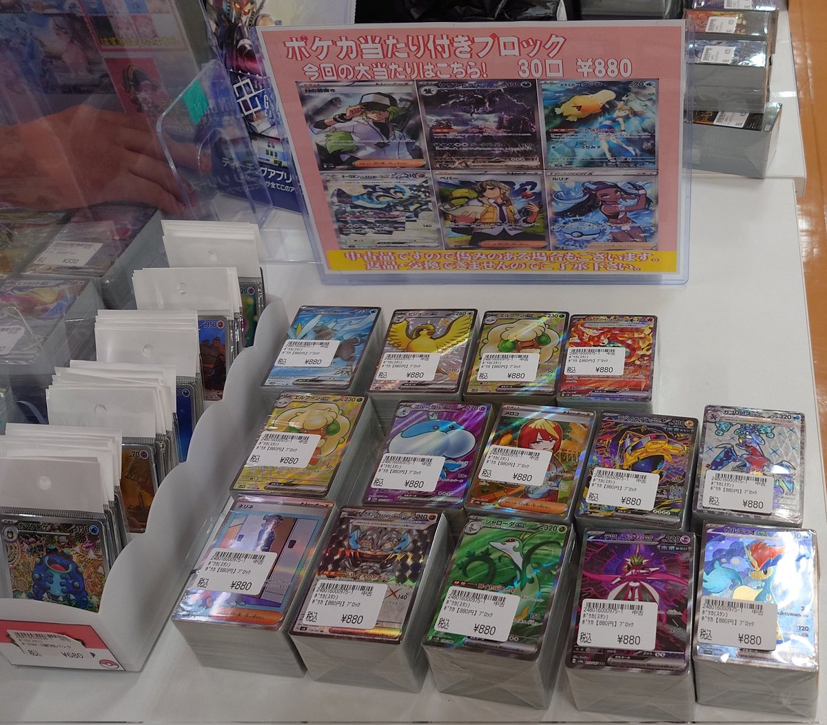 シーガル郡山店です! ポケモンカード レジ前にて ブロック各種 詰め合わせパックなど 販売中です!😊