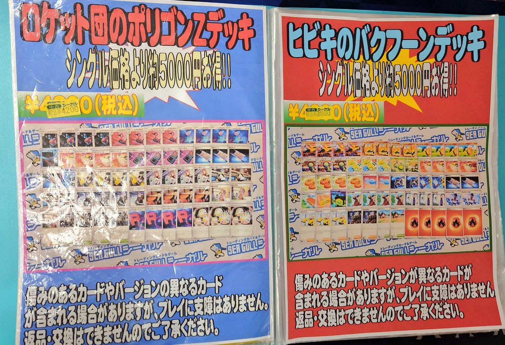シーガル郡山店です! ショーケースにて すぐに対戦できる 構築済みデッキ 販売中です! #シーガル郡山店デッキ販売 にて リストの確認もOK! 店頭ファイルでも確認いただけます! ロケット団のポリゴン ヒビキのバクフーン デッキ お値下げしました! お買い求め安くなっております✨