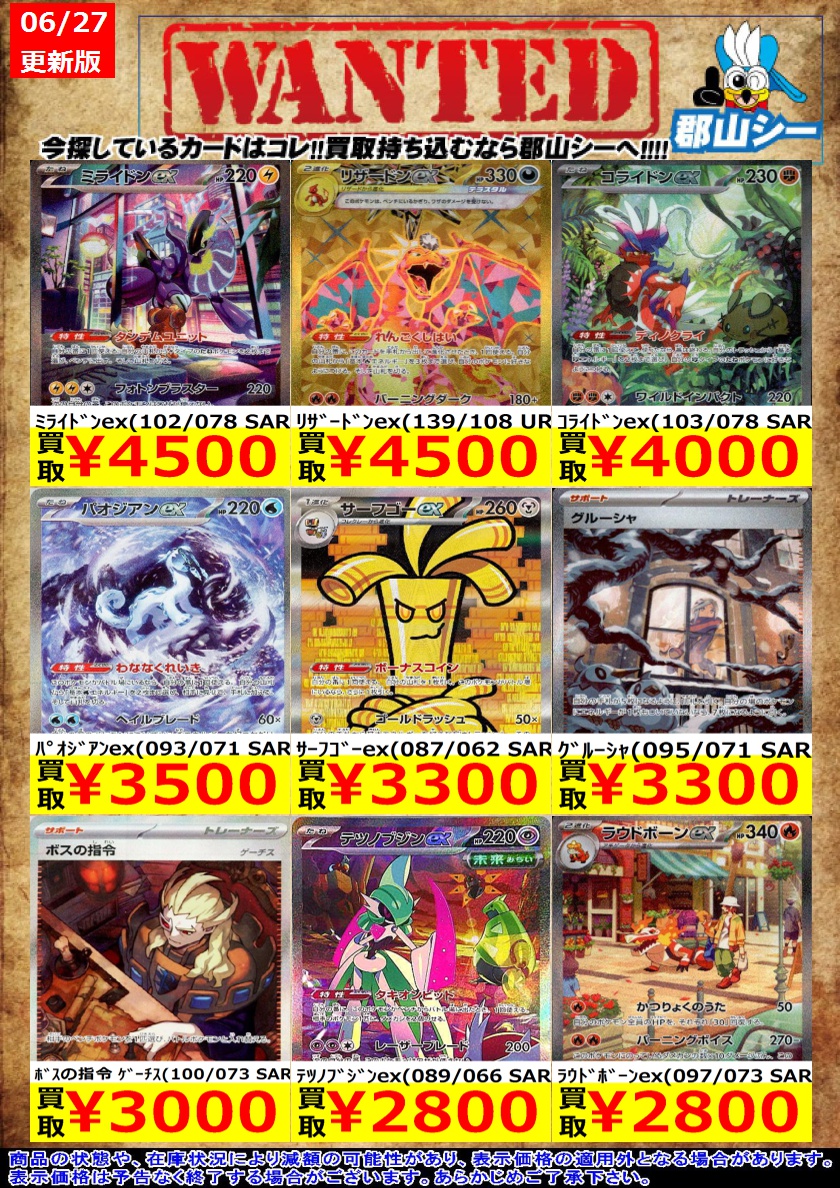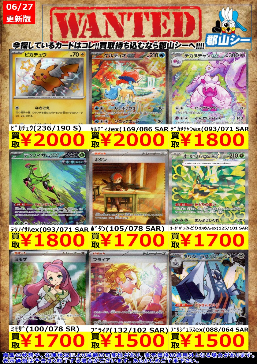 シーガル郡山店ポケカ数量限定お買取り情報更新です!よろしくお願いいたします! ※商品の状態や在庫状況により減額の可能性があり、表示価格の適用外となる場合がございます。