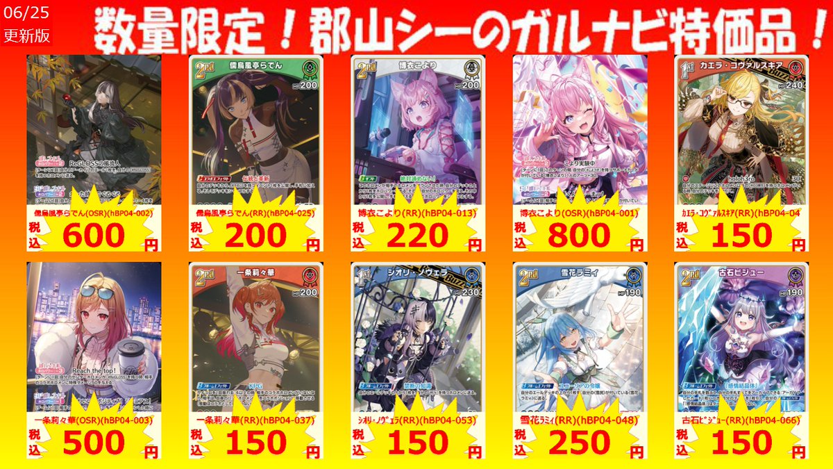 数量限定郡山シー限定ガルナビ特価品! 儒烏風亭らでん(C)(hBP04-020) ¥50 博衣こより(C)(hBP04-008) ¥50 大空スバル(C)(hBP04-067) ¥50 #ホロカ #特価品 #シーガル郡山