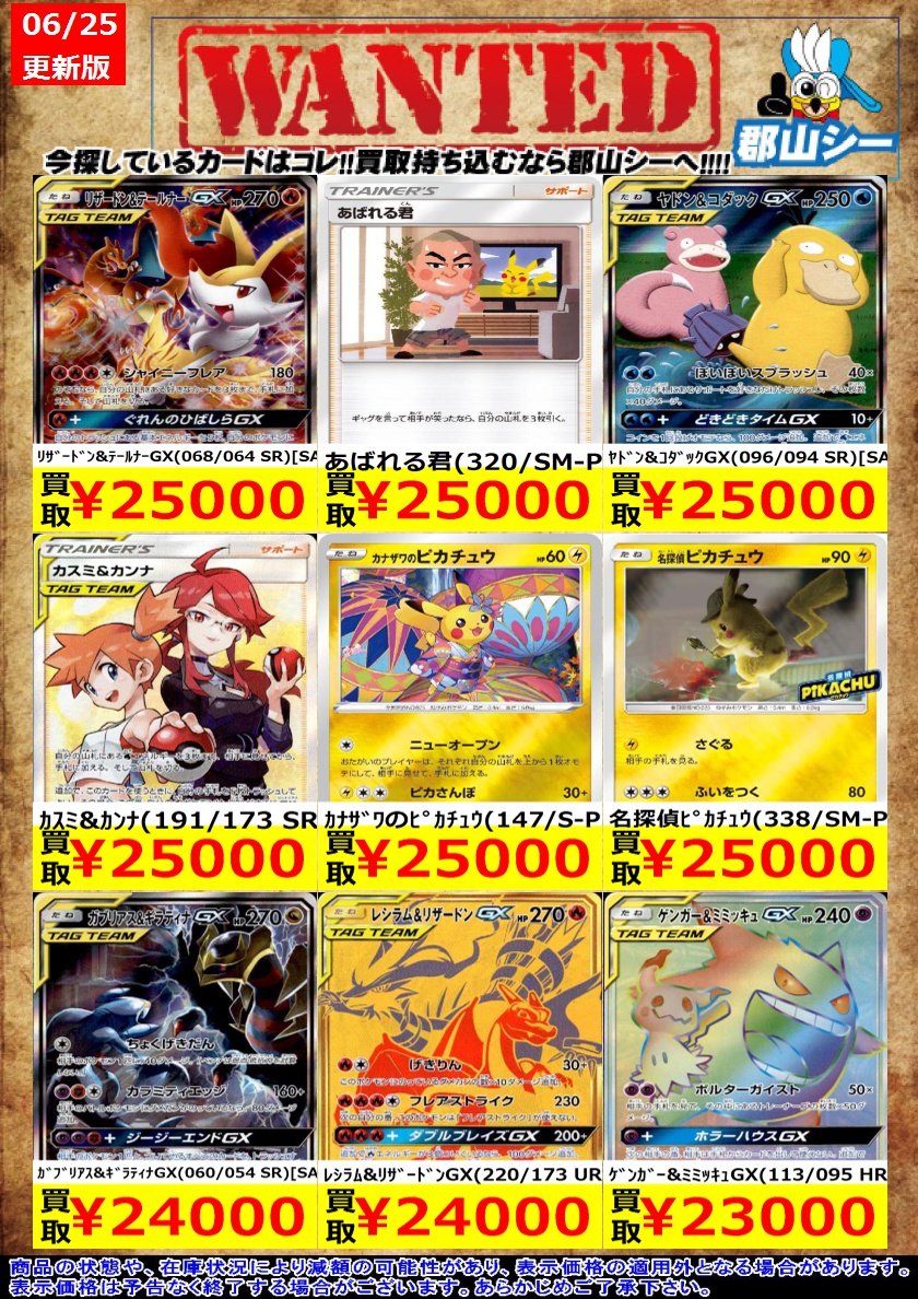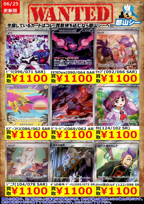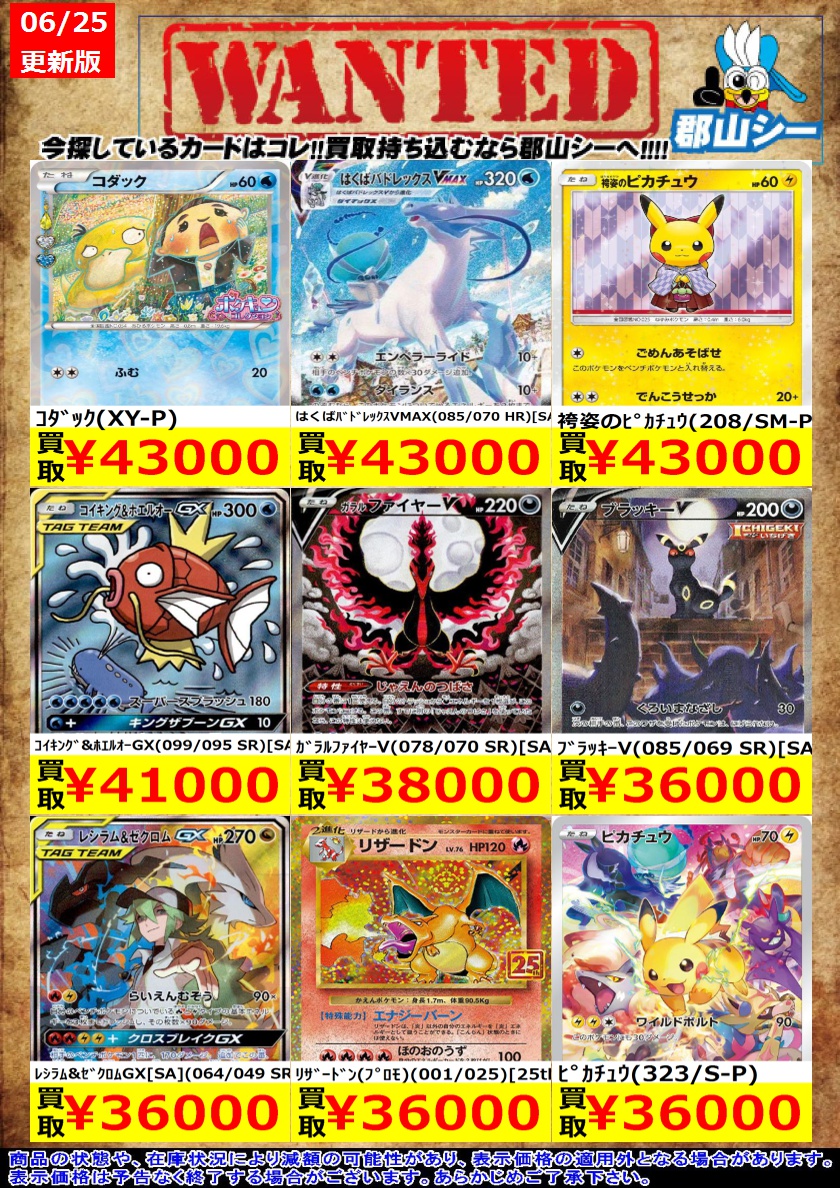 シーガル郡山店ポケカ数量限定お買取り情報更新です!よろしくお願いいたします! ※商品の状態や在庫状況により減額の可能性があり、表示価格の適用外となる場合がございます。