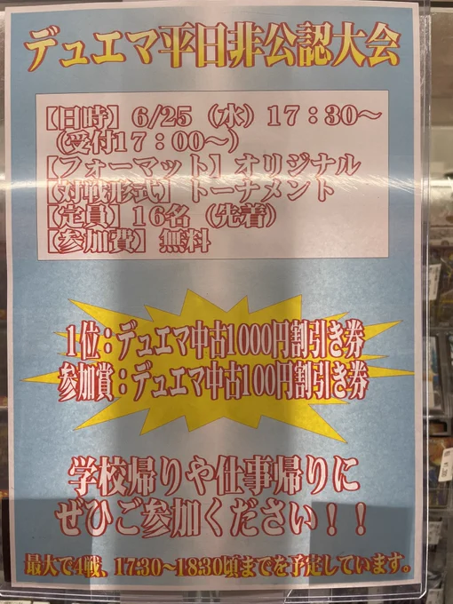 本日デュエマ平日非公認大会を行います❗️ みなさまのご参加お待ちしております🙇♂️