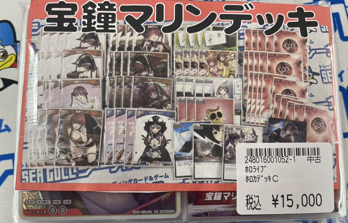 こんばんは\(^▽^)/! シーガル郡山店です。 ホロカ またまたデッキ作成いたしました。 今回も昨日の大型イベントで大活躍‼️【宝鐘マリン】デッキになります。 お値段15000円となっております。 ショーケースにて展開中です。 ご来店お待ちしております(*´˘`*)