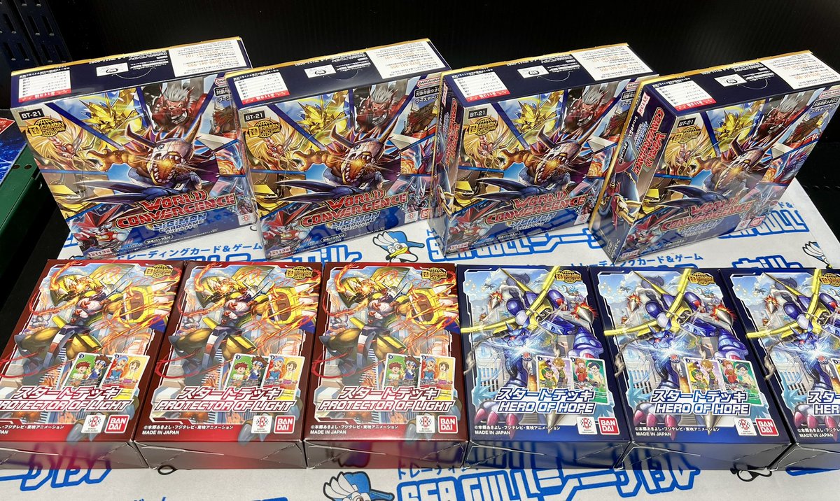 #デジモンカードゲーム ✅スタートデッキ 『PROTECTOR OF LIGHT』【ST-20】 ✅ スタートデッキ 『HERO OF HOPE』【ST-21】 ✅ブースタ-パック 『WORLD CONVERGENCE』【BT-21】 在庫ございます❗️ 皆様のご来店をお待ちしております😊