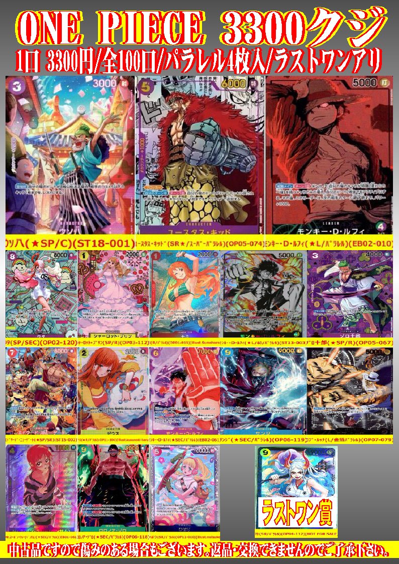 シーガル郡山店です。 ワンピ3300円クジ作品致しました‼️ 全100口でラストワンありとなっております。 よろしくお願いします🙇