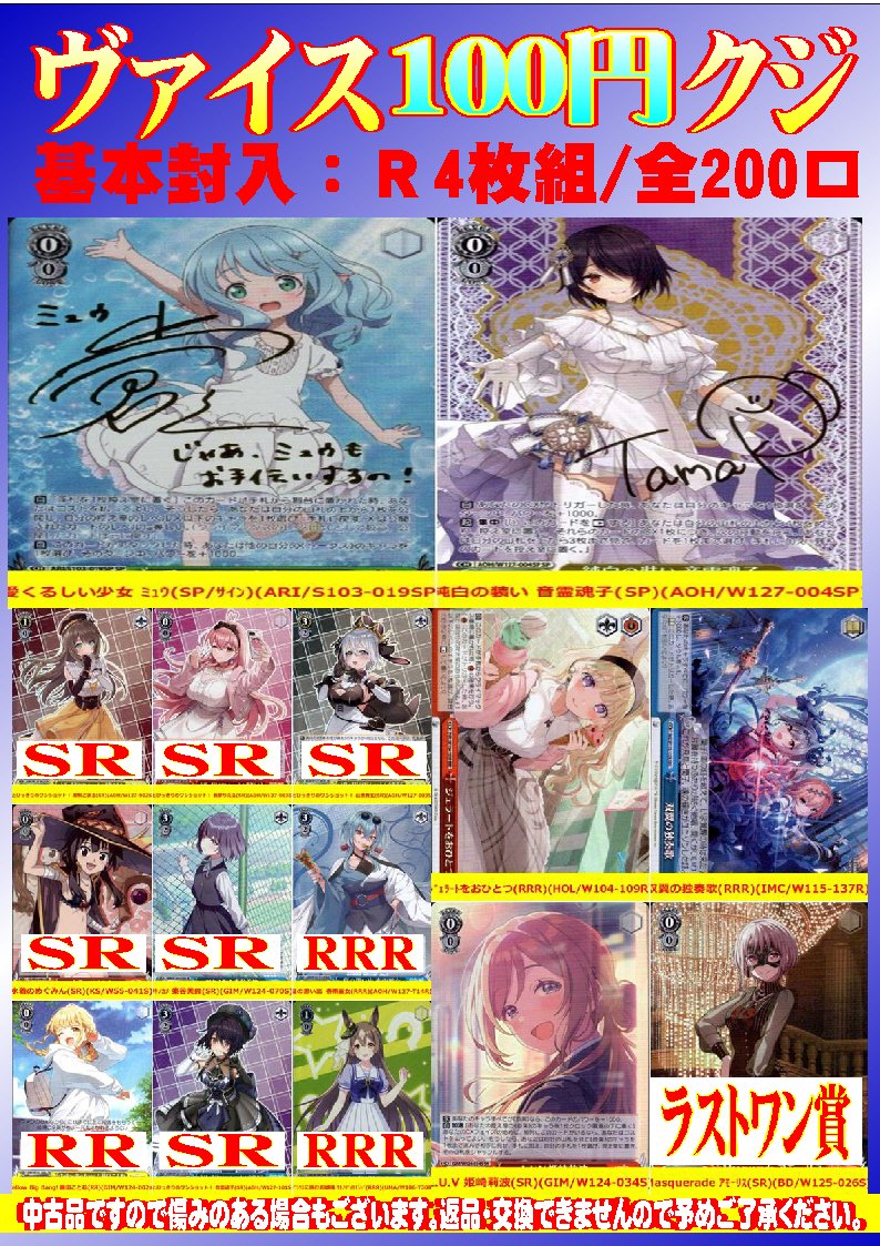 シーガル郡山店です。 ヴァイス100円くじ作成致しました‼️ 全200口でラストワンありとなっております。 よろしくお願いします。