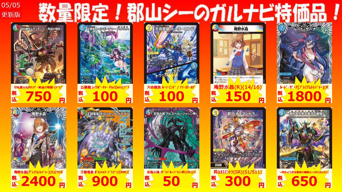 数量限定!郡山シー限定ガルナビ特価品 至高の魂 アビスベル=ジャシン帝(OR)(OR1/OR1) ¥50 庵野水晶(R)(14/16) ¥150 竜社長 ゴルファウンデーション(SR)(S8/S11) ¥250 #デュエマ #シーガル郡山 #アツアツ特価