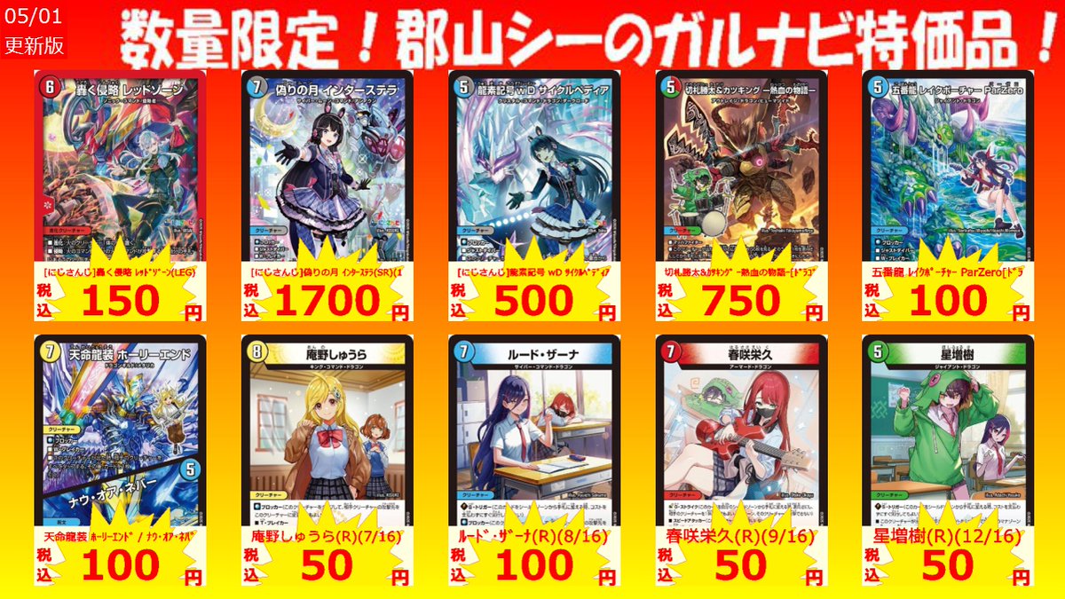数量限定!郡山シー限定ガルナビ特価品 至高の魂 アビスベル=ジャシン帝(OR)(OR1/OR1) ¥50 ルード・ザーナ(R)(8/16) ¥100 庵野水晶(R)(14/16) ¥150 #デュエマ #シーガル郡山 #アツアツ特価