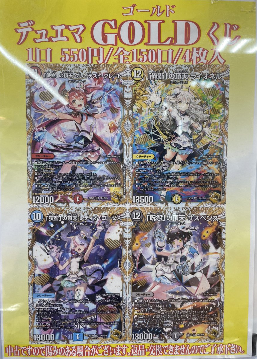 デュエマGOLDくじを作成いたしました❗️ シークレットが確定で封入されているピッカピカなくじです✨ よろしくお願いいたします🙇♂️