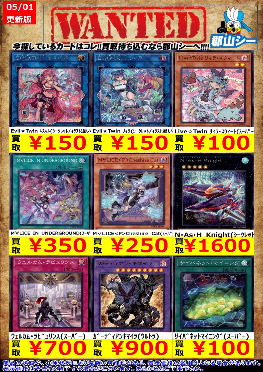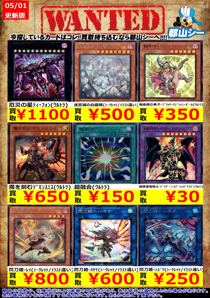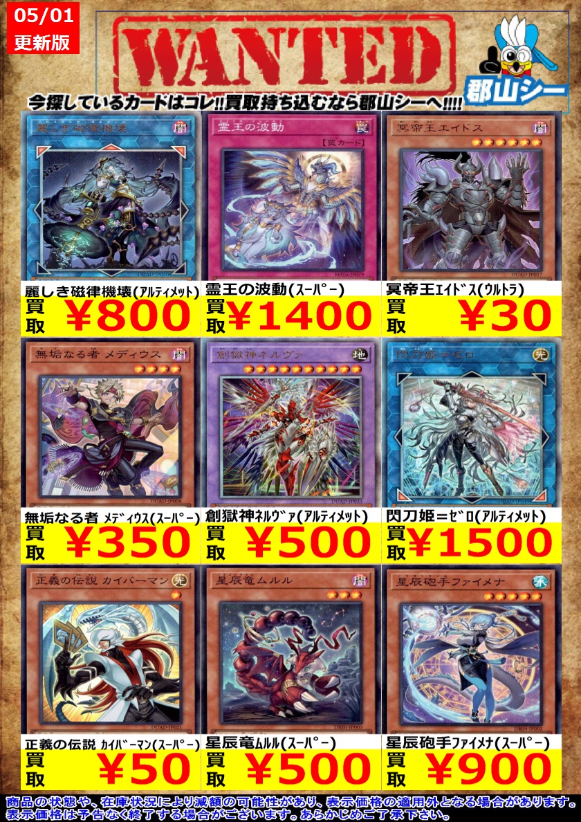 シーガル郡山店遊戯王お買取り情報 ※商品の状態や在庫状況により減額の可能性があり、表示価格の適用外となる場合がございます 屋敷わらし(シークレット) ¥30 超魔導竜騎士-ドラグーン・オブ・レッドアイズ(ウルトラ) ¥30 原始生命態ニビル(スーパー) ¥30 #遊戯王 #シーガル #郡山店