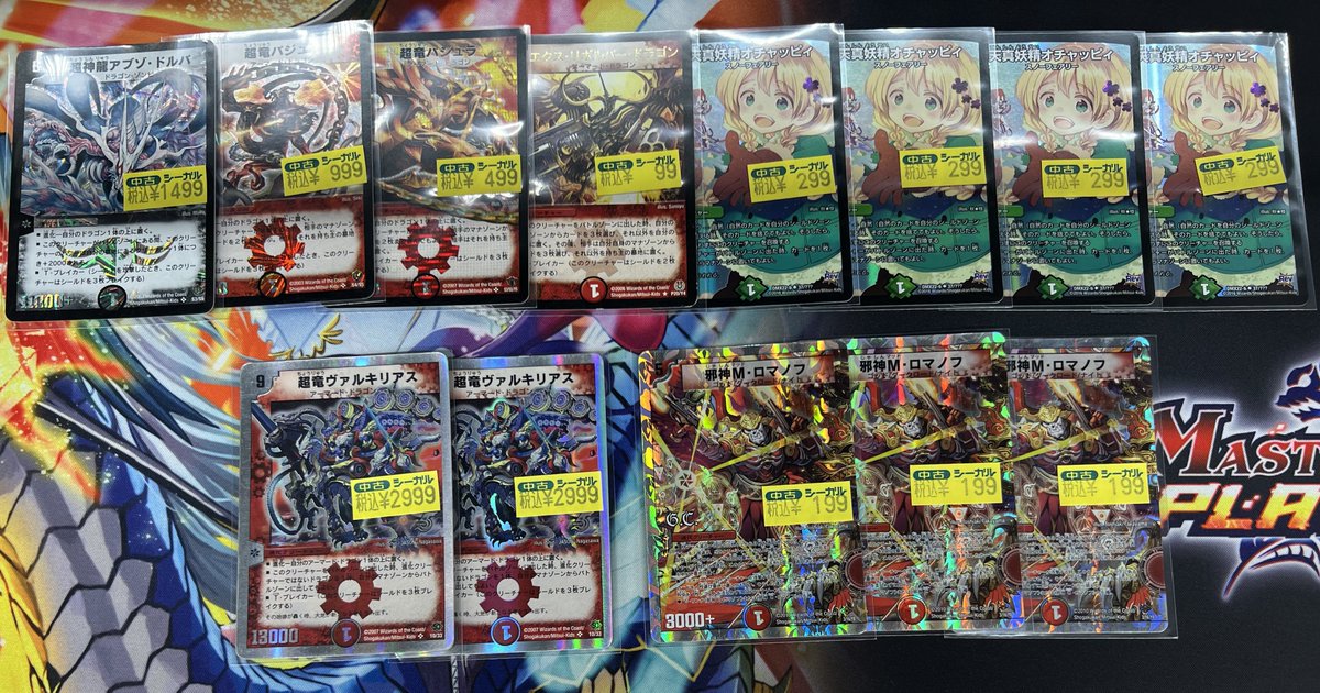 超竜ヴァルキリアスほか、良さげな特価品補充致しました〜‼️ 上段は〈懐かしカードコーナー〉、 下段は〈ダメージ特価コーナー〉 に展開致しました! 是非ぜひご利用ください(*´ω`*)