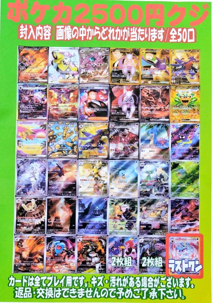 シーガル郡山店です! ポケモンカード2500円くじ作成いたしました! よろしくお願い致します(*Ü*)