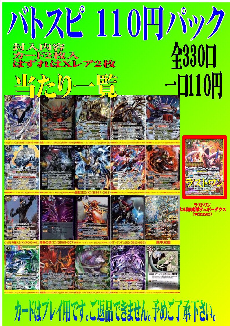 こんばんは\(^▽^)/! シーガル郡山店の田中です❣️ バトスピ 110円オリパを作成致しました。 ご来店お待ちしております(*´˘`*)